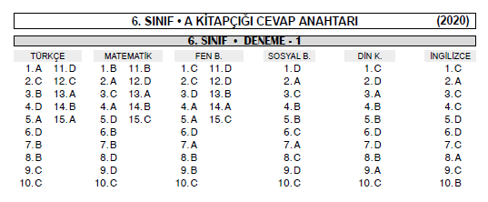 arti bir yayinlari deneme sinavi cevap anahtari icin tiklayiniz gulova ilkokulu